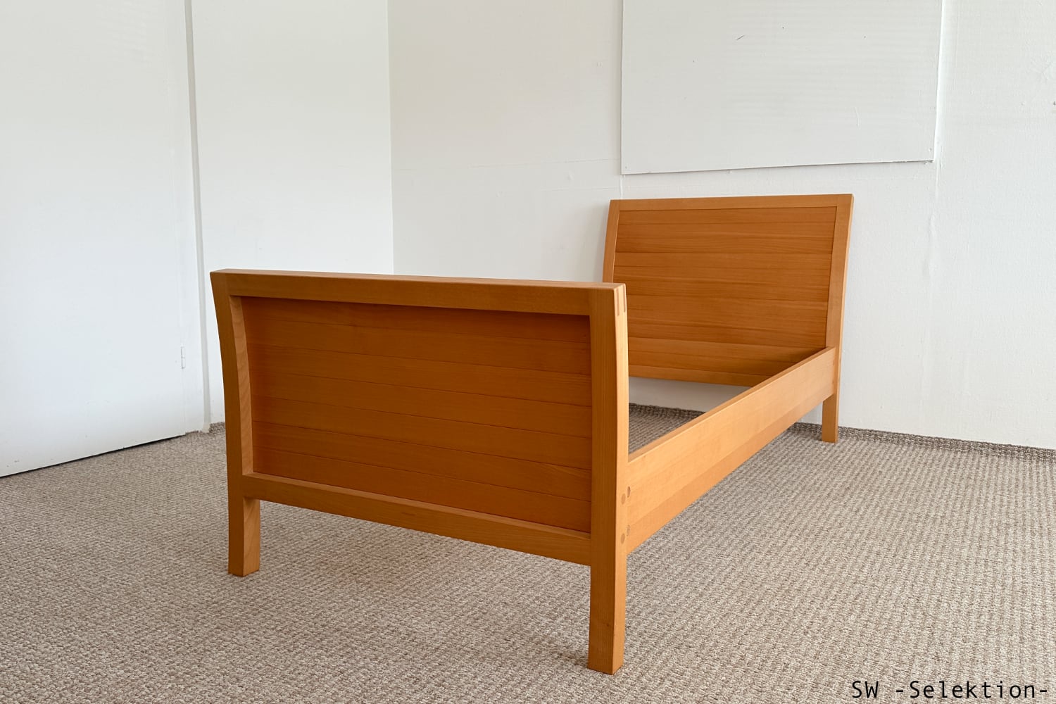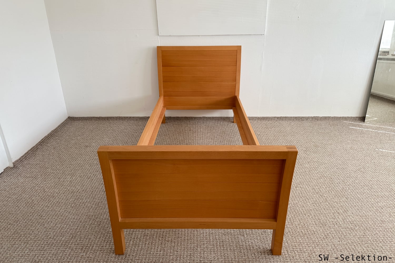 - Gesamtmaße B98 x L219 x H Seitenwange 37,5, Kopfteil 94 cm, Fußteil 71 cm, Einlegehöhe für den Lattenrost 23 cm, Liegefläche 90×200 cm, lichte Höhe 19,5 cm