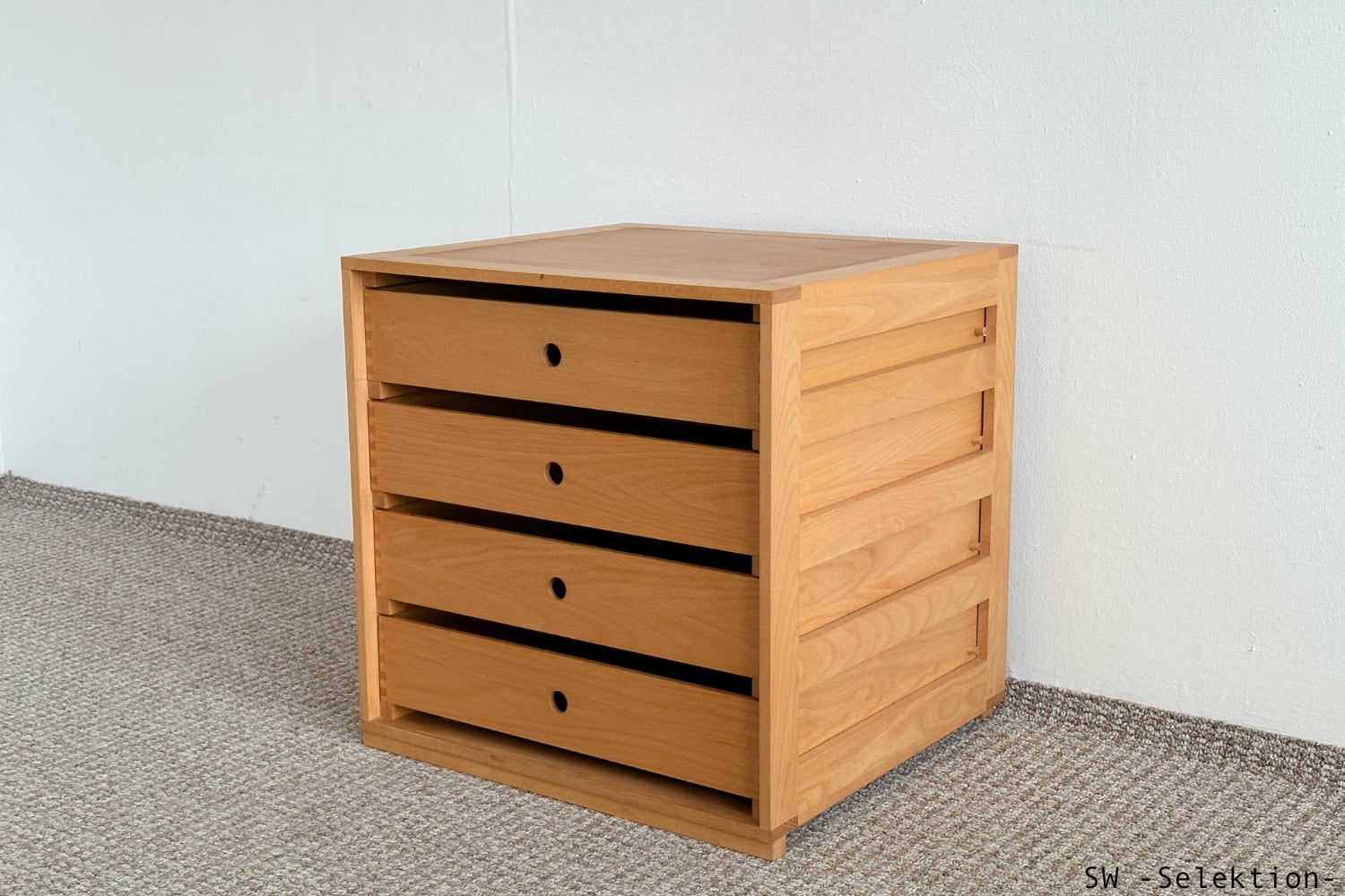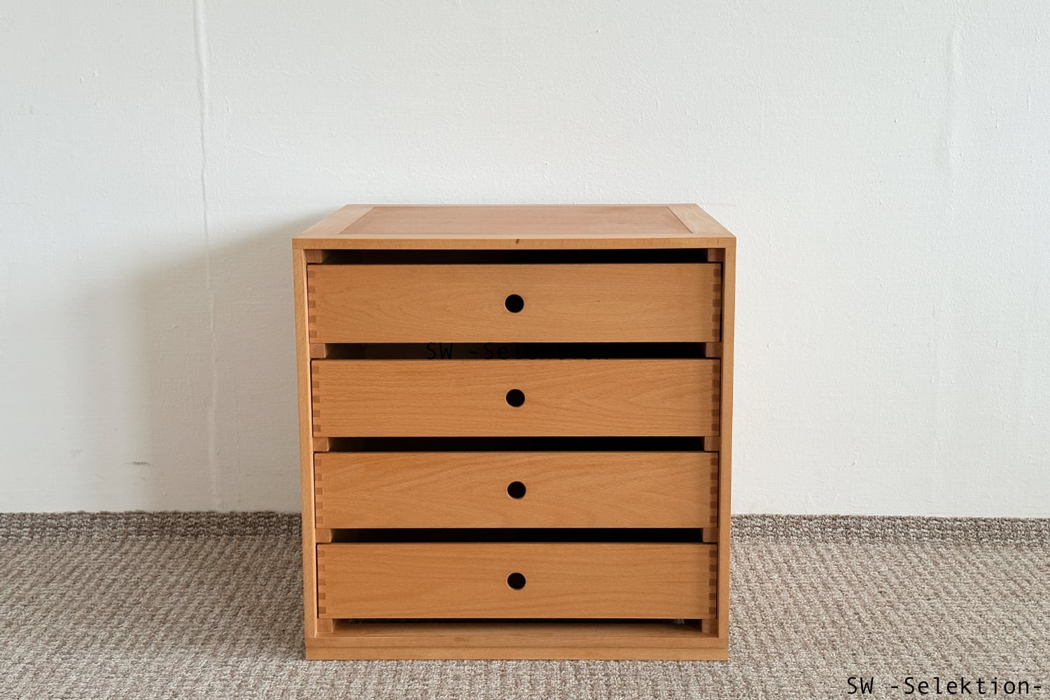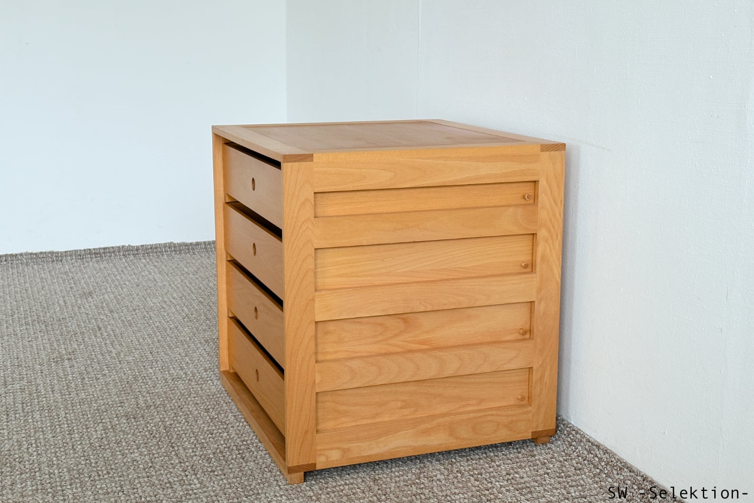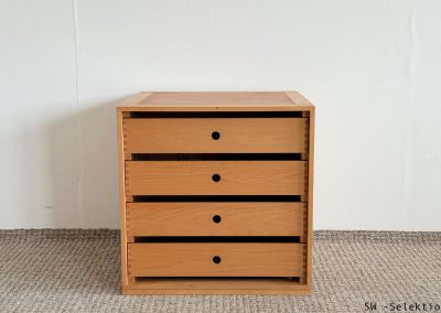 - charmante optische Details: gesimsartige Deckplatte, leicht eingeschrägte Füße, feine Griffknöpfe aus Holz