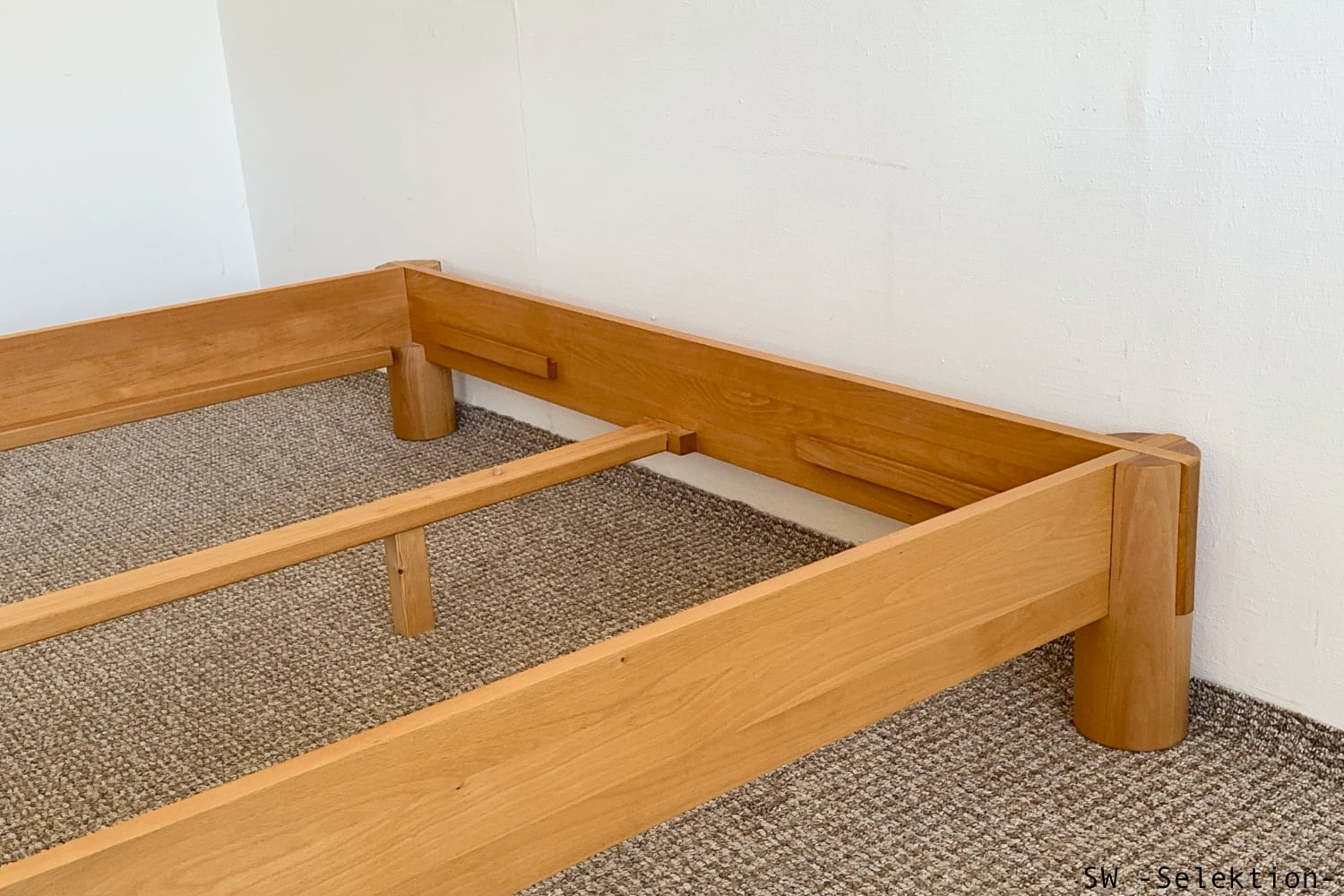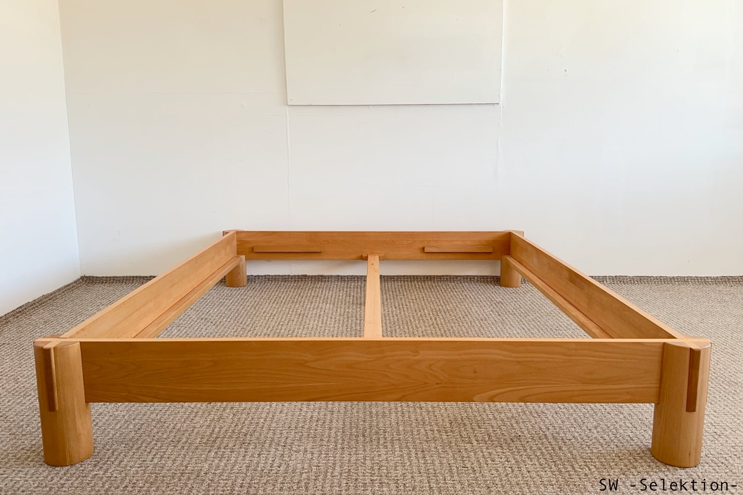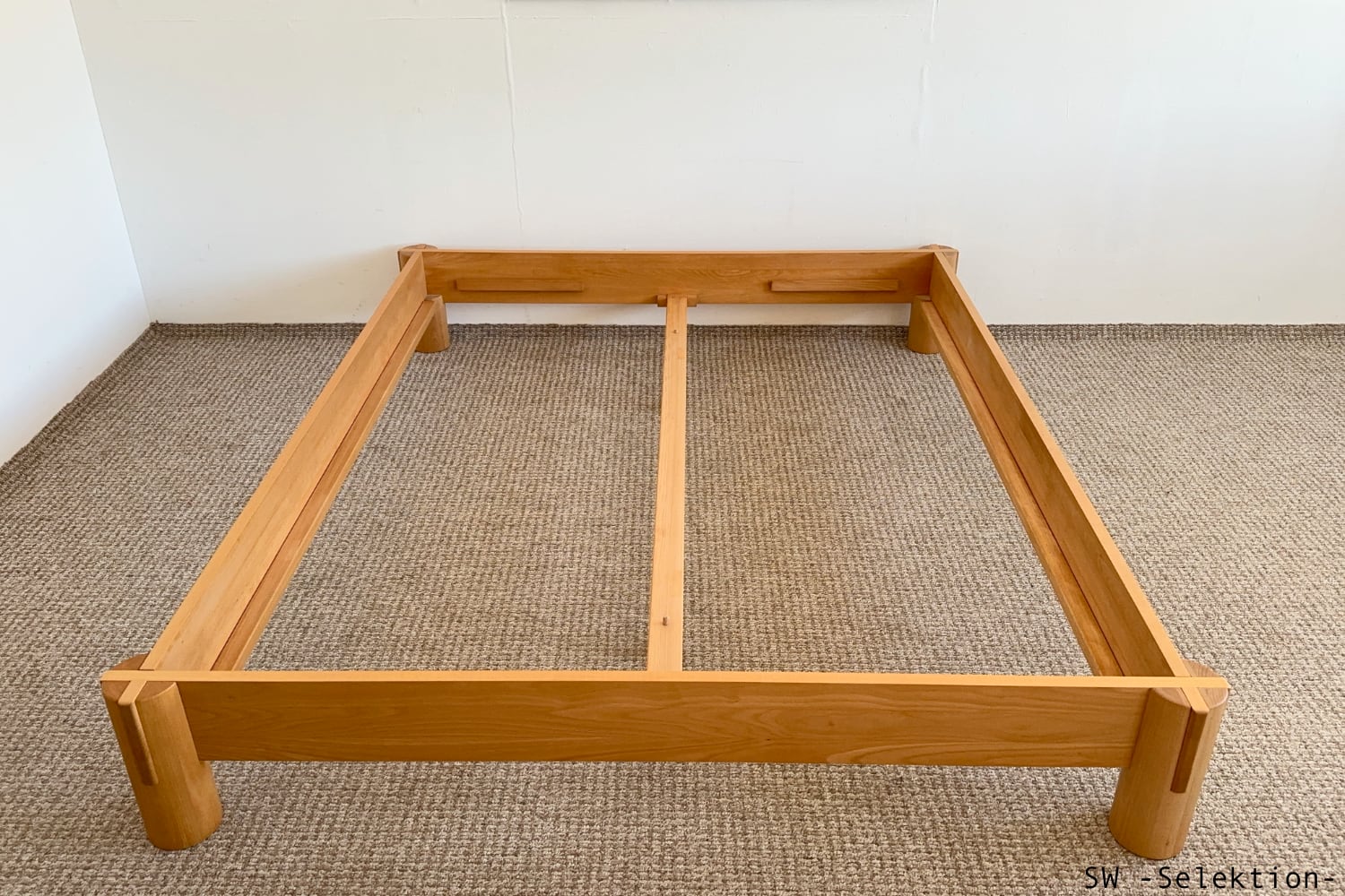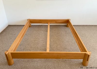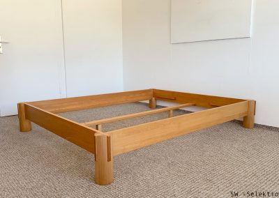 - asiatisch anmutendes Bett mit klaren Linien und markanten Schnittpunkten