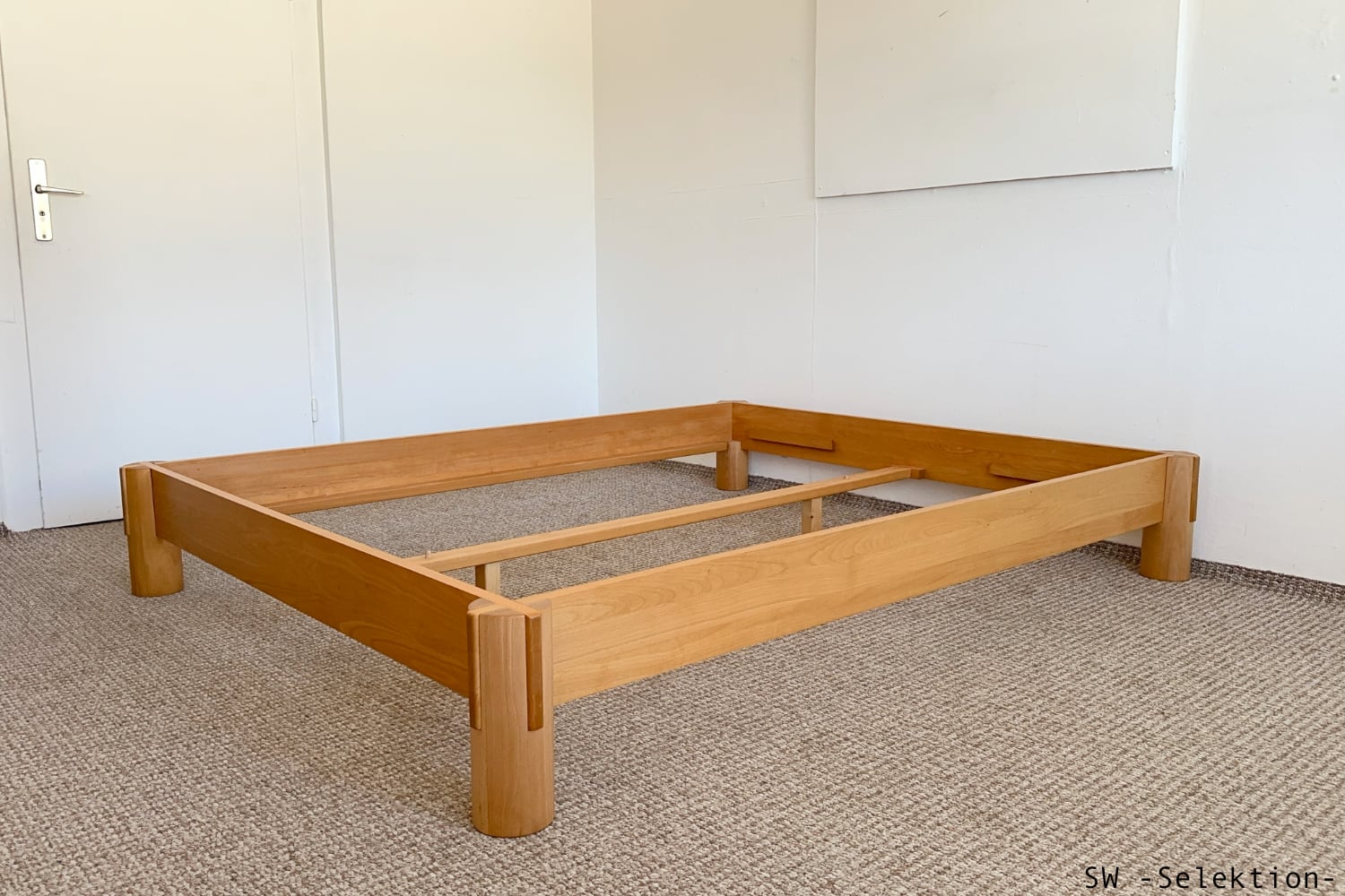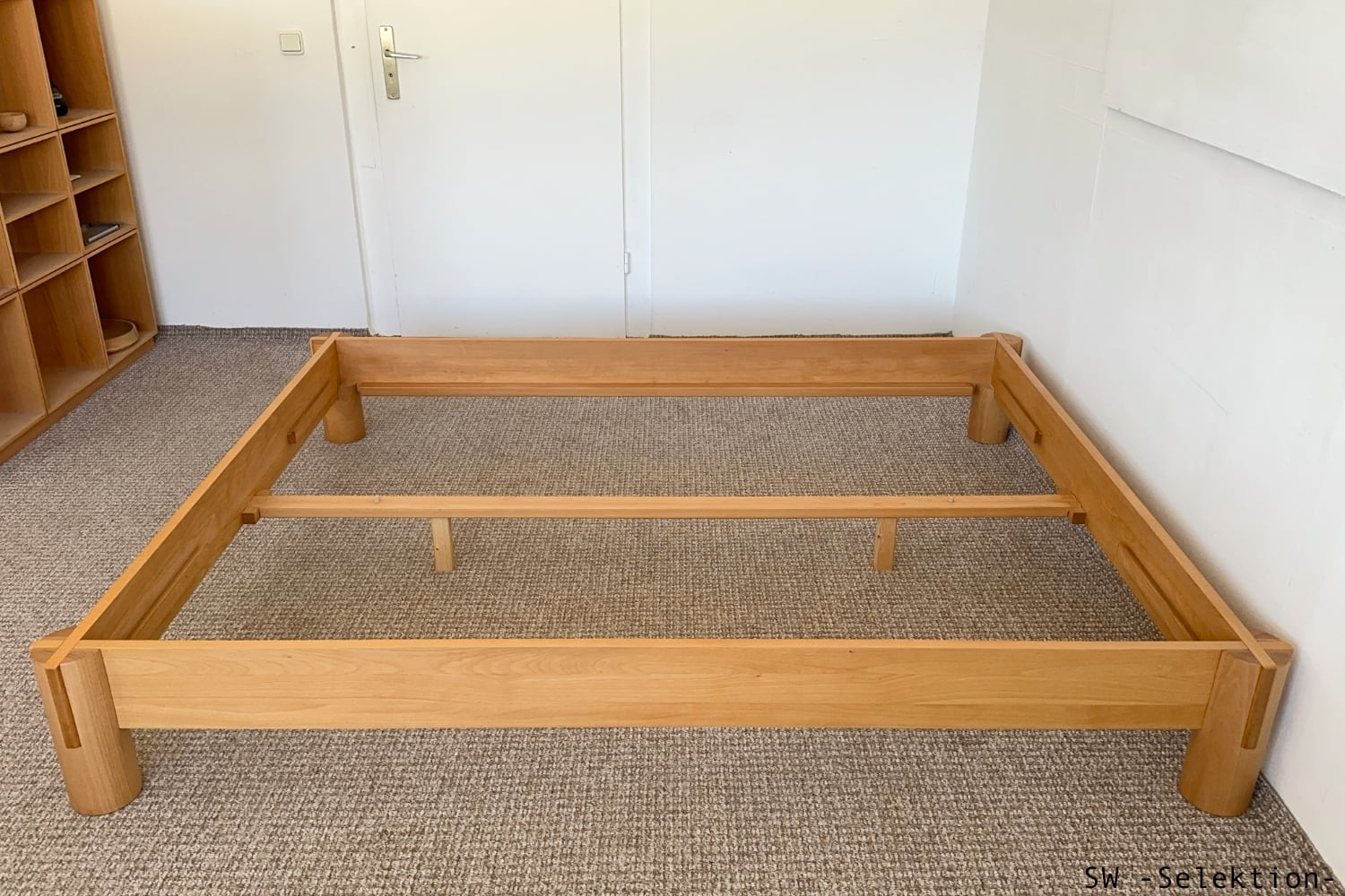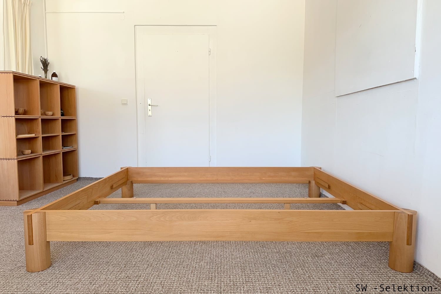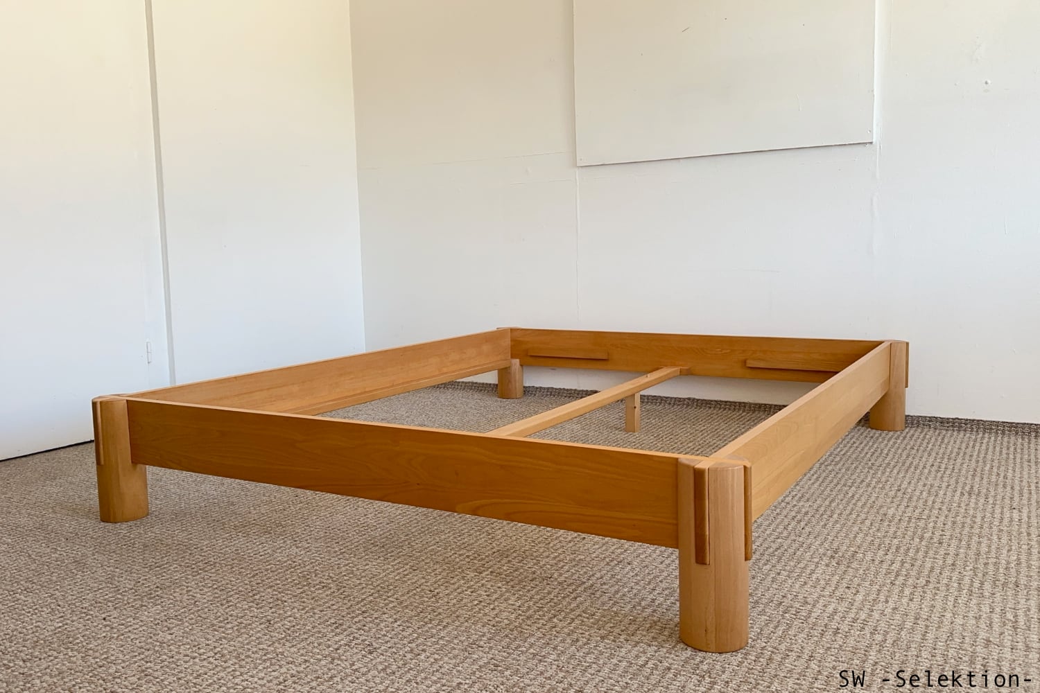 - asiatisch anmutendes Bett mit klaren Linien und markanten Schnittpunkten