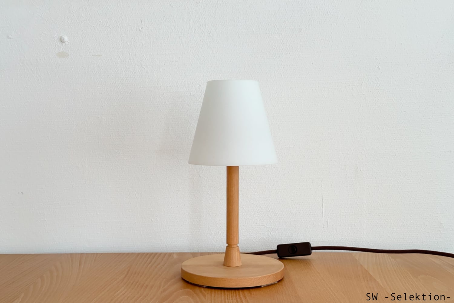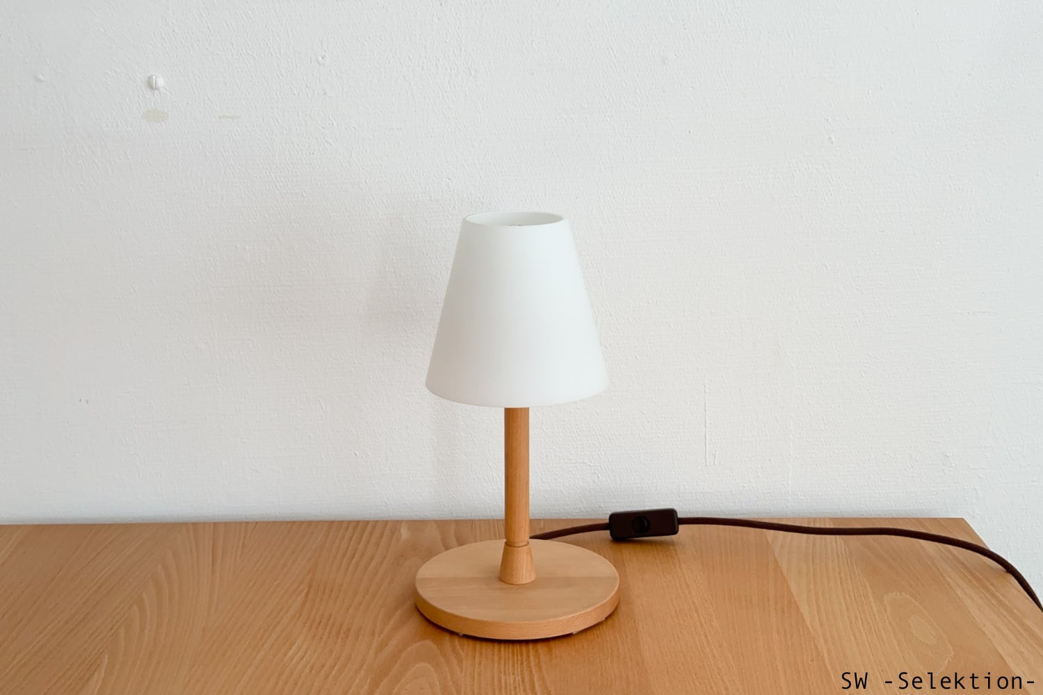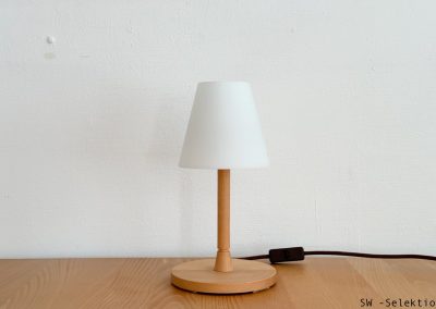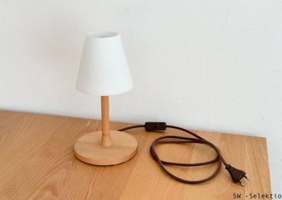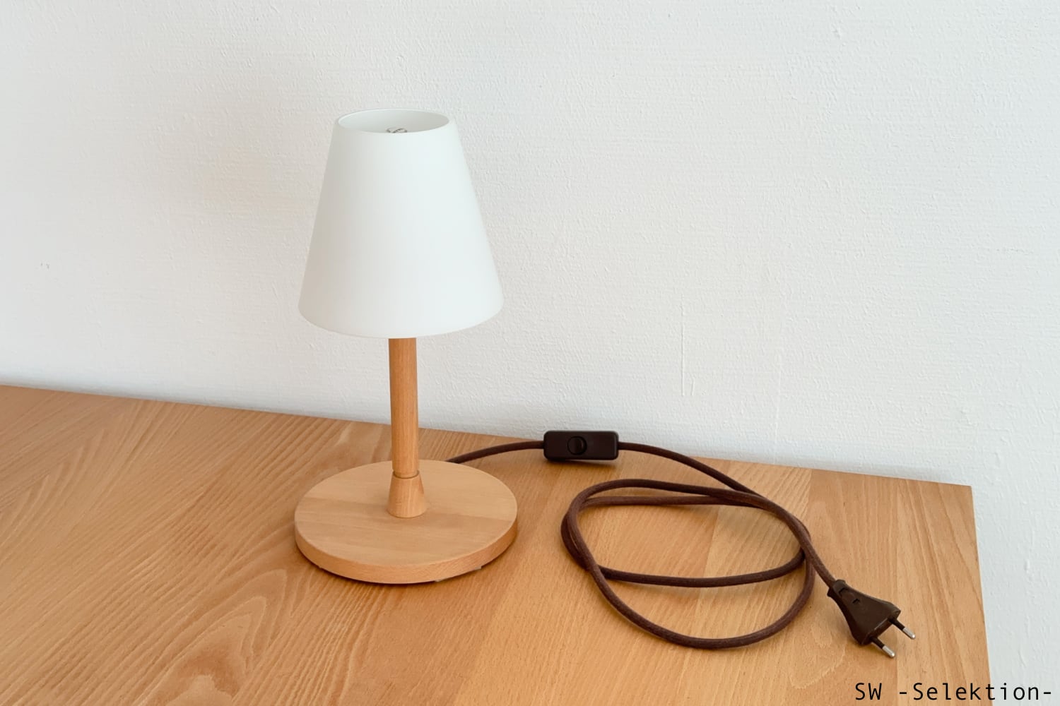 • der Halter des Lampenschirmes sowie alle anderen Teile sind aus Buchenvollholz gedrechselt und geölt