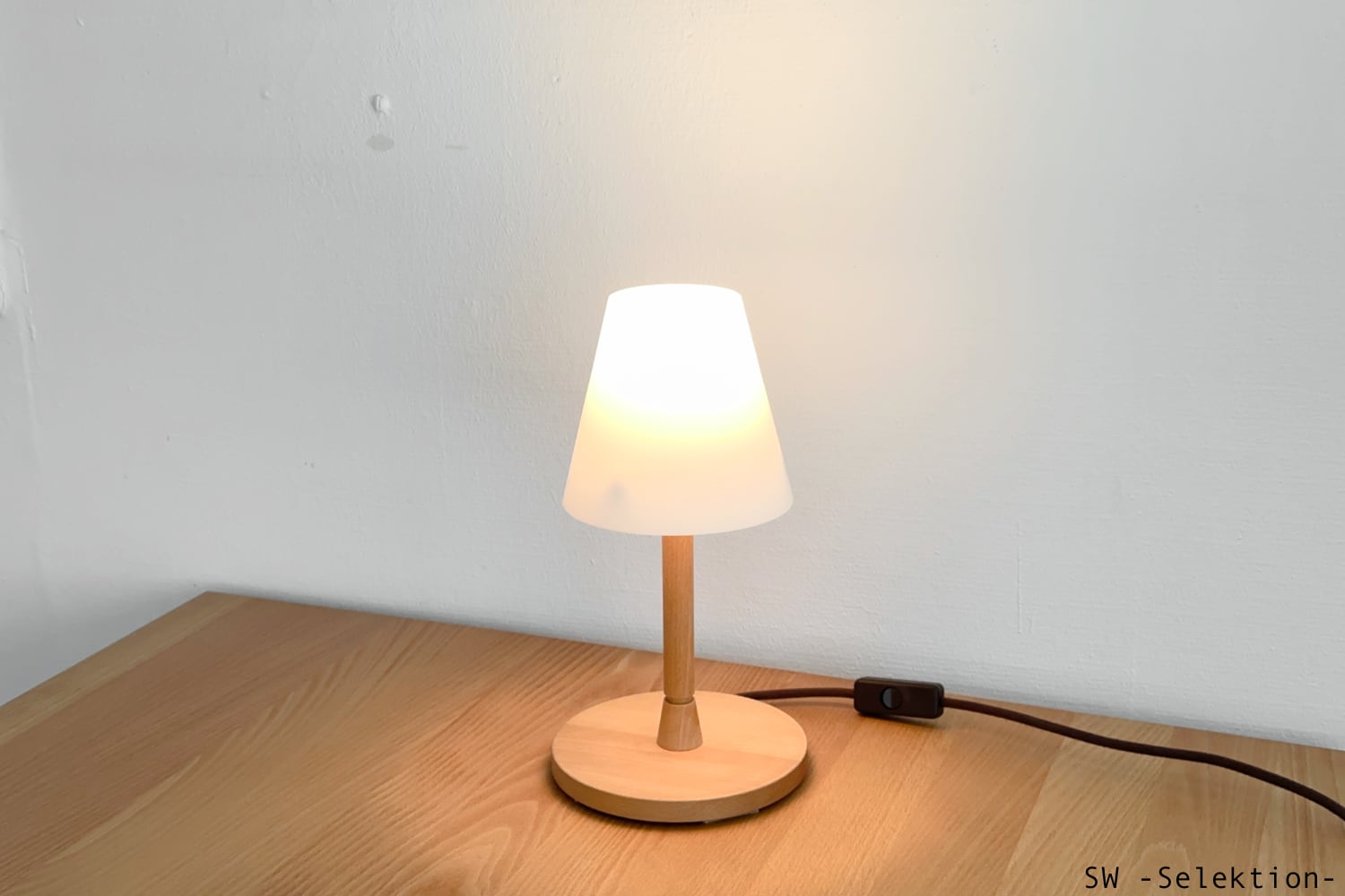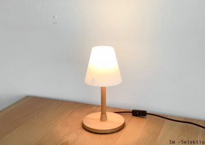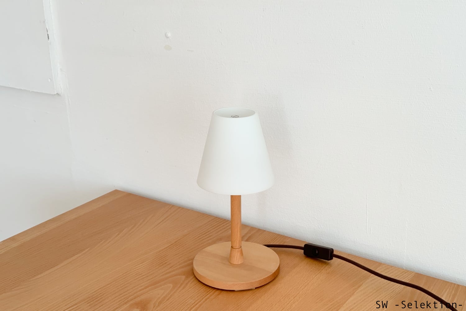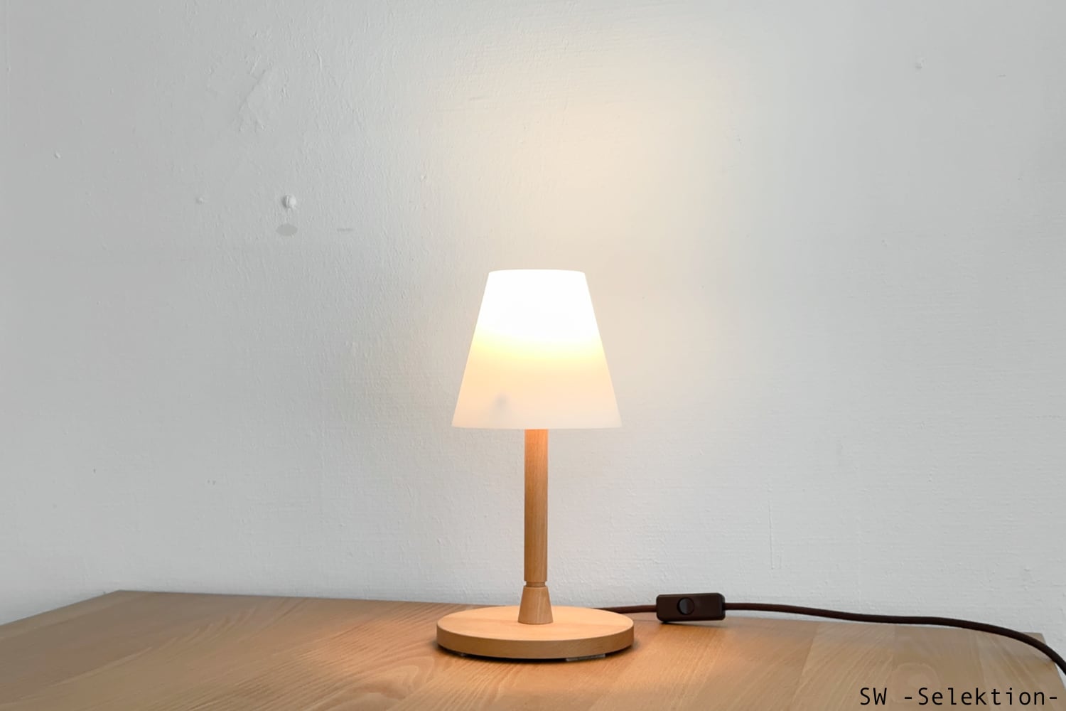 • der Halter des Lampenschirmes sowie alle anderen Teile sind aus Buchenvollholz gedrechselt und geölt