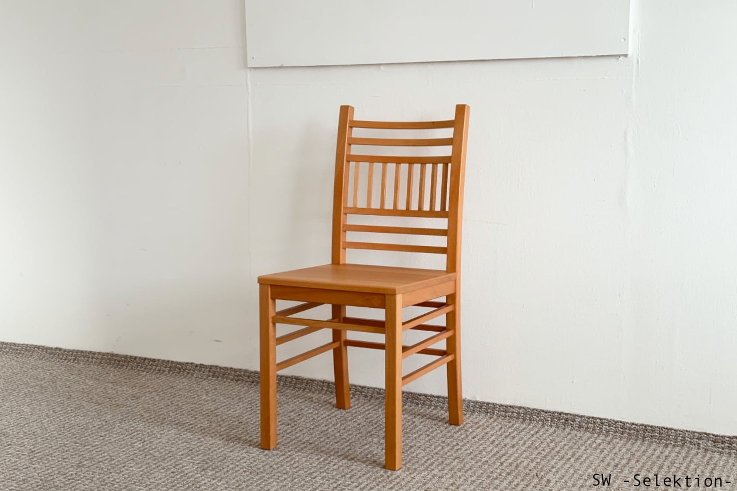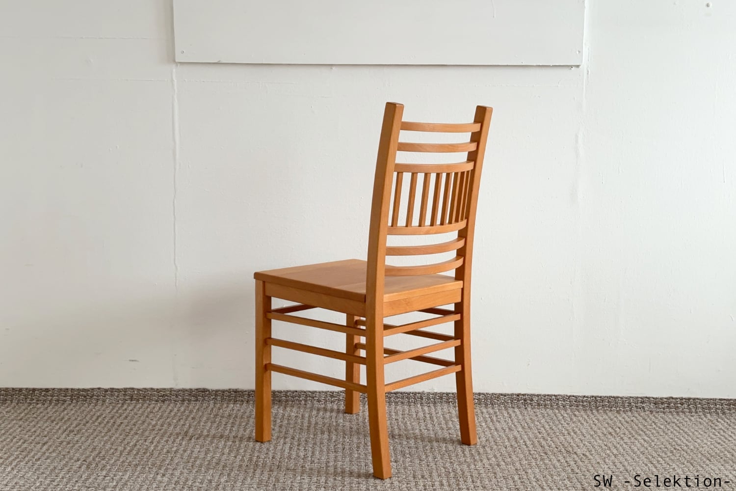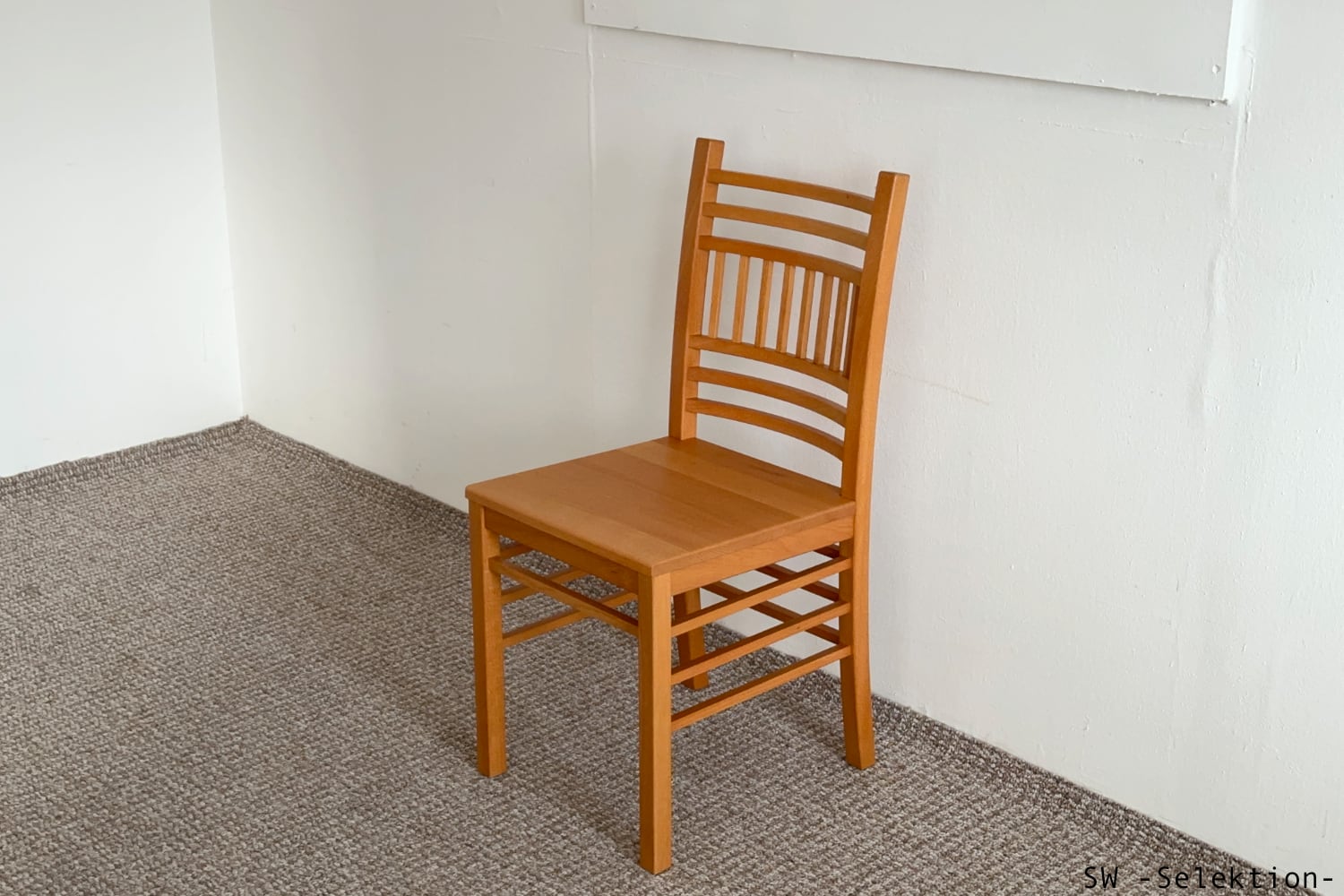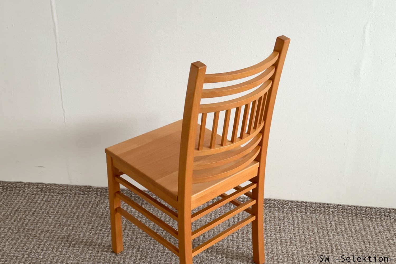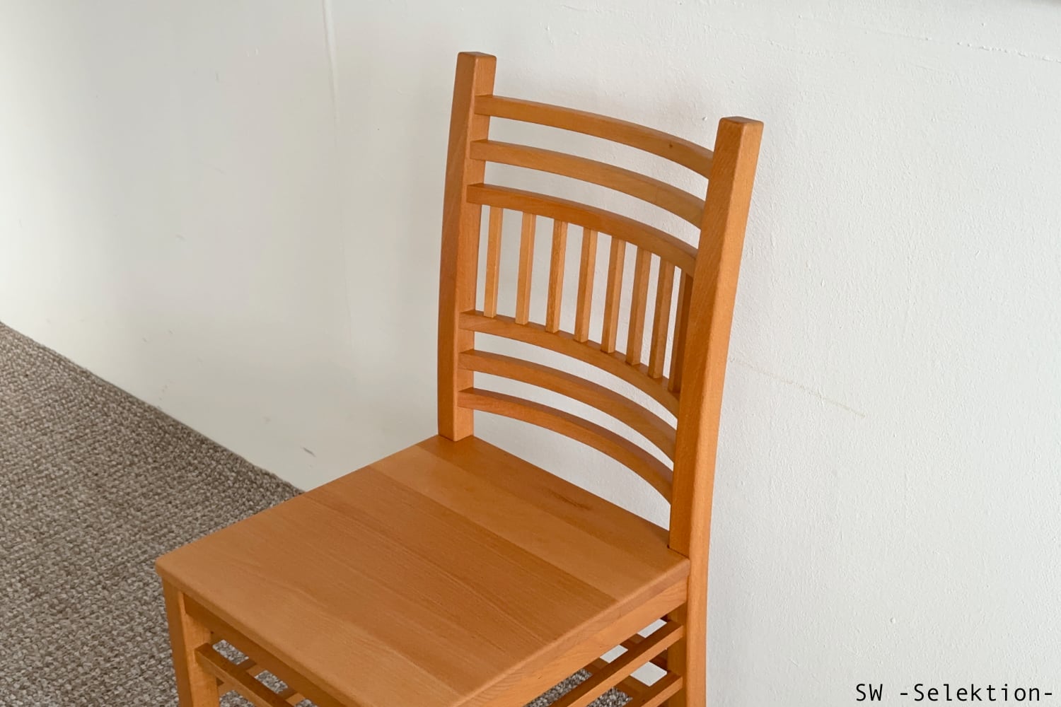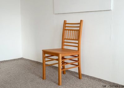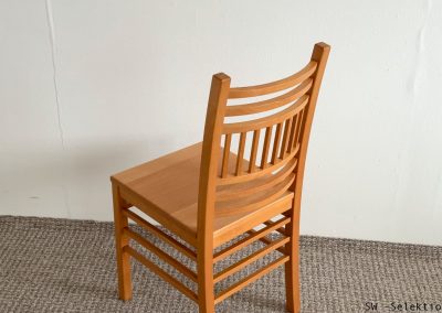 • zeitlos, sehr komfortabel, passt zu vielen Tischen; sanft gebogene Rückenlehne mit horizontalen Sprossen