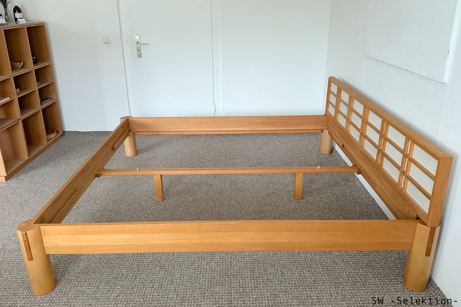 • asiatisch anmutendes Bett mit wunderschönem, robustem Betthaupt im Shoji-Stil