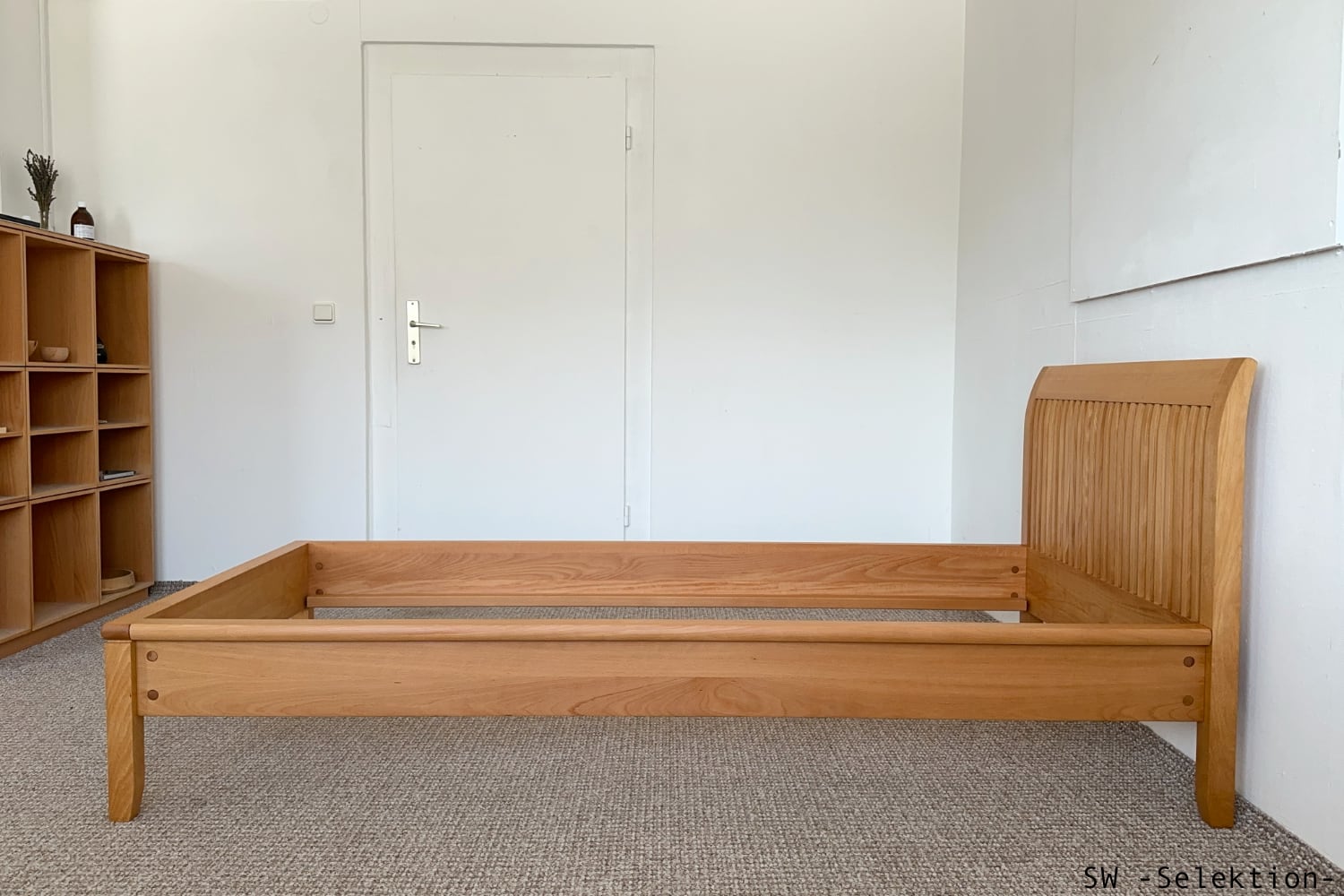 • die Silhouette des Bettes gleicht der eines Bootes, insgesamt ein wunderschönes Bett mit elegantem Schwung