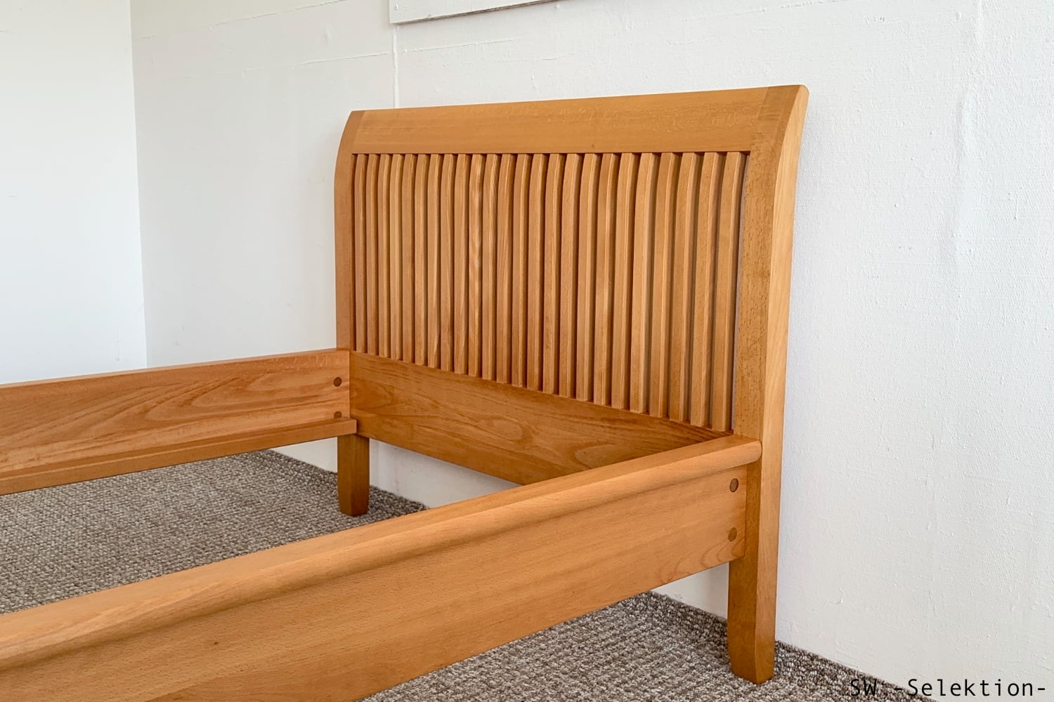 • helles Birkenholz schafft ein leichtes, luftiges Bett; beschränkt auf Material und Form, verbindet nordische Klarheit mit sanften Formen
