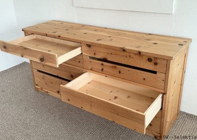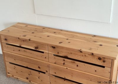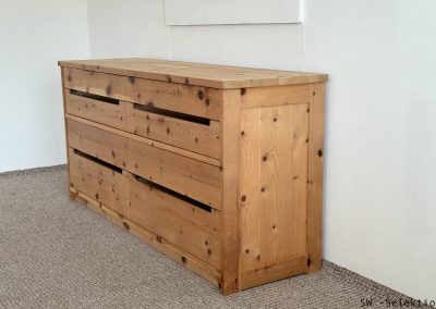 • vier geräumige Schubladen mit vertieften Muschelgriffen, aus wunderbar duftendem Zirbenholz